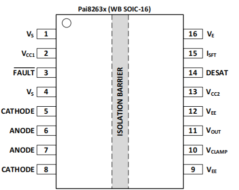 The Pai8263x is an advanced 6.0A output current, easy touse, smart gate driver which make IGBT VCE fault protection