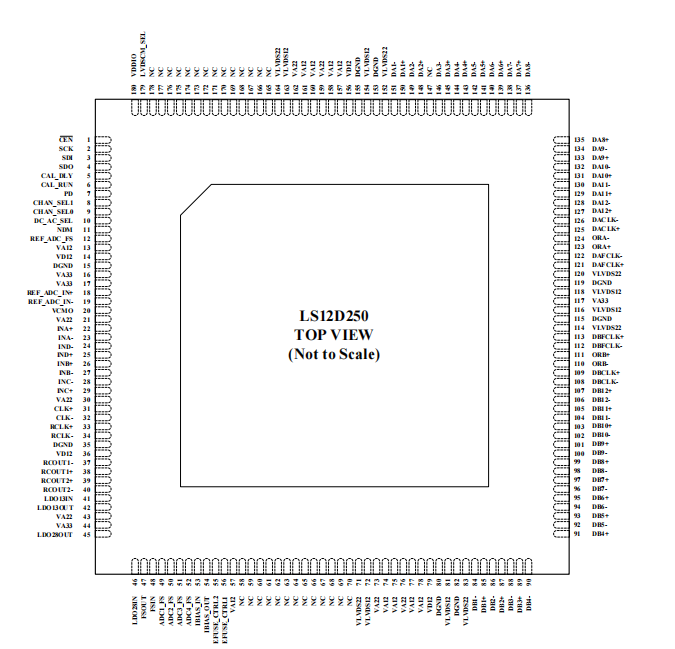 LS12D250 具有 LVDS 接口的四通道 250MSPS 以及双通道 500MSPS 的 12 位模数转换器(ADC)