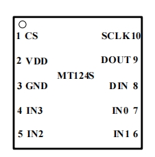 MT124S 是一款低功率、12 位、4 通道的 CMOS 逐次逼近型模数转换器, 转换吞吐率